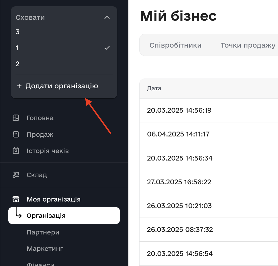 Щоб додати організацію, натисніть на кнопку додати організацію