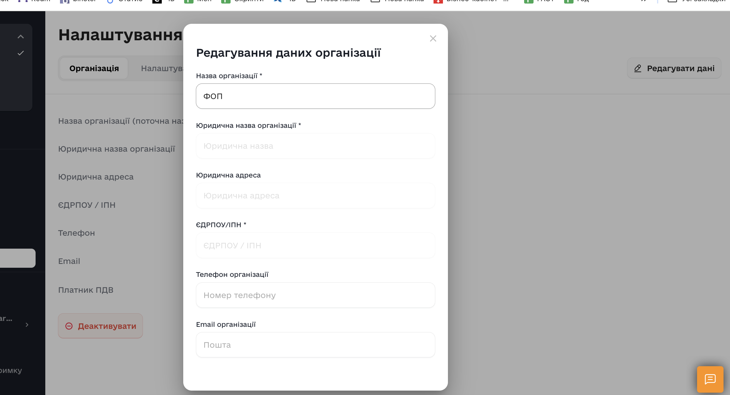 Юридична назва організації, Юридична адреса та Єдрпоу - підтягуються у момент підключення ПРРО до каси автоматично, їх редагувати неможна